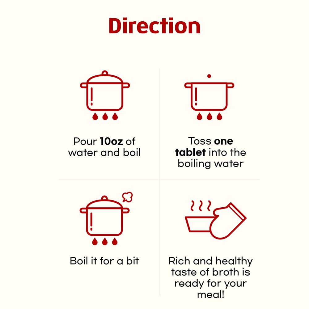Wygodne tabletki instant (20 sztuk po 3 g) o smaku pikantnej zupy bazującej na 18 naturalnych składnikach – roślinnych i morskich. Nadają głęboki, intensywny smak przypominający koreańskie zupy i pikantne potrawy jednogarnkowe.