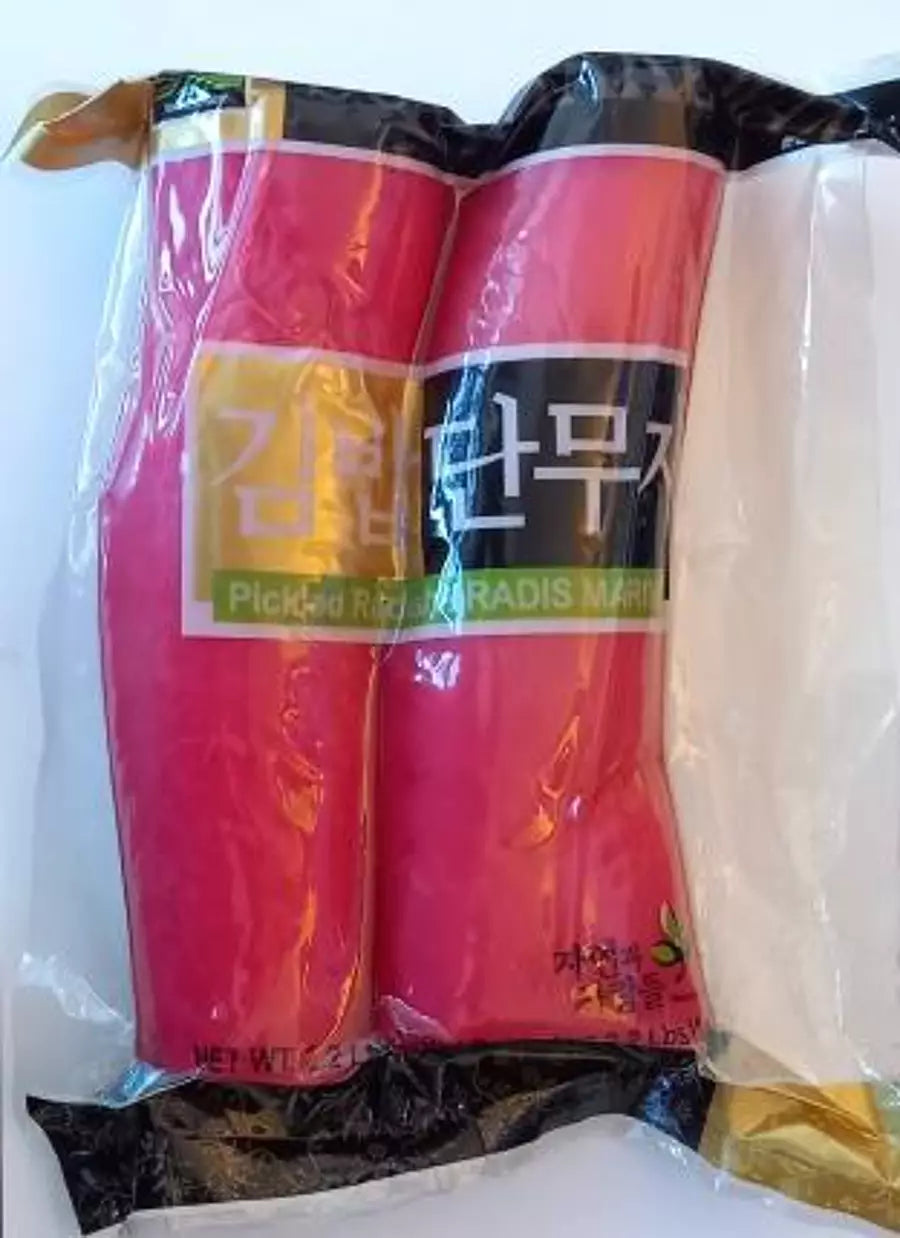 Wariant klasycznego japońskiego/azjatyckiego takuan, czyli marynowanej rzodkwi (daikon), charakteryzujący się intensywną barwą, chrupiącą konsystencją i delikatnym lekko słodko-kwaśnym smakiem.